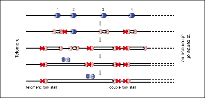 Replisome stall events have shaped the distribution of replication origins in the genomes of yeasts.