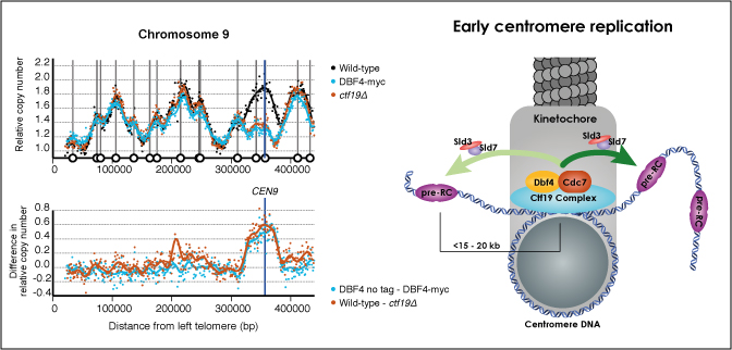 All cells contain a complete copy of the organism's DNA, the genetic blueprint of life, packaged into discrete units called chromosomes. Since new cells need a copy of the genetic material, the chromosomes must be completely and accurately replicated before the cell can divide. Eukaryotes, such as yeast and people, have large genomes with millions of bases encoding the genetic information. To ensure complete replication of these genomes within the allowed time, the process of DNA replication starts at multiple sites along each chromosome, called replication origins. These replication origins are specialised DNA sequences that assemble the cellular machinery that then moves along the DNA, reading and copying the genetic material. It is essential that the cell activates sufficient replication origins to ensure complete replication of the chromosomes. The importance of controlling replication origin activation is highlighted by the genome instability and diseases that may result from uncontrolled chromosome replication. Despite the importance of DNA replication origins we understand little about the DNA sequences that specify and control them. Failures in the processes of DNA replication lead to genetic instability and diseases such as cancer and congenital disorders. In the future, a better understanding of the basic biology that ensures genetic integrity will give new insights that will allow improved diagnosis and treatment of these diseases.